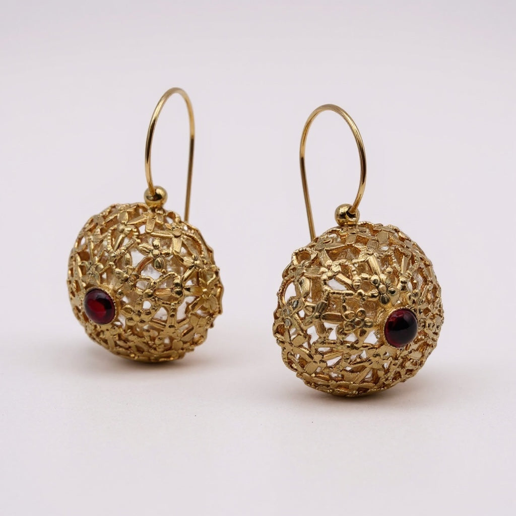 ORECCHINI CUPOLA TRAFORATA CON GRANATO
