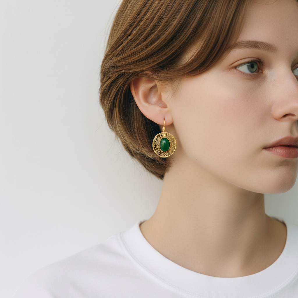 ORECCHINI CERCHI FILIGRANA CON AGATA