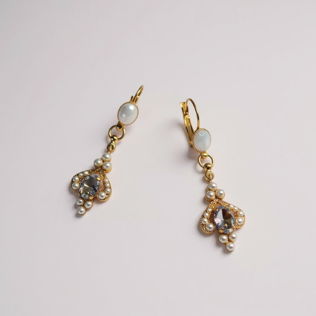 ORECCHINI PENDENTI CON MADREPERLA E QUARZO